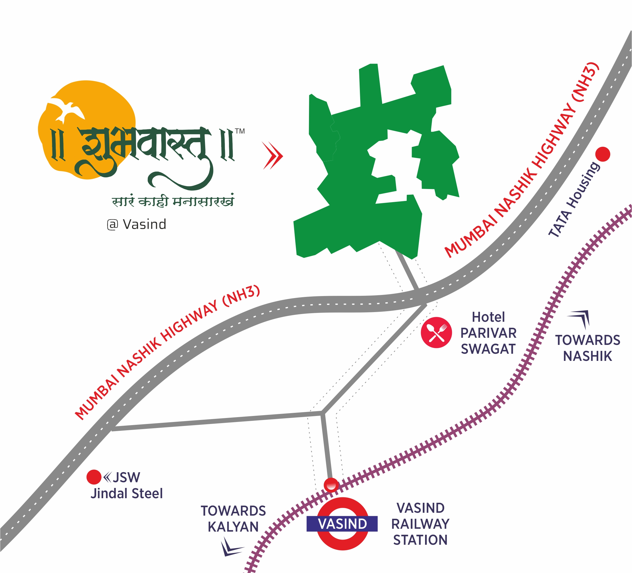 In vicinity of Mumbai : Discover the perfect address that keeps you close to Mumbai while surrounding you with peace and greenery. Nestled in the lush, pollution-free environment of Vasind, Shubhvastu offers an unbeatable combination of lifestyle and connectivity. With direct access to the Central Railway CST line and just a convenient 10-minute ride from the railway station, Shubhvastu is a dream location for professionals commuting to the city. Enjoy effortless travel, quicker connections, and the freedom to live in a calm, spacious setting without moving far from Mumbai’s opportunities. At Shubhvastu, you don’t compromise you upgrade.
